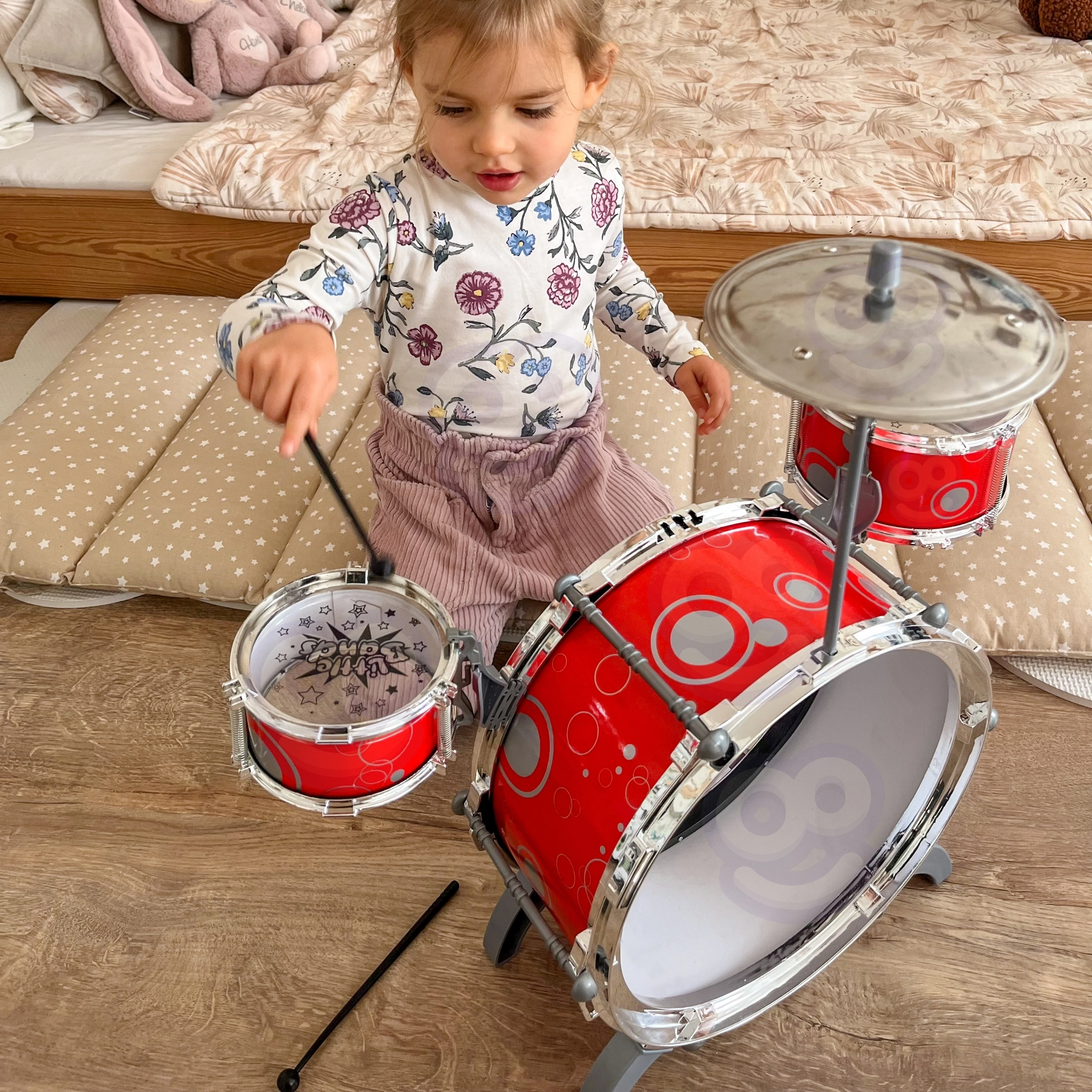 La batería infantil WOOPIE ofrece una forma divertida y segura de introducir a los niños en la música. El set compacto incluye un bombo central con pedal, toms laterales, un platillo y baquetas, todo diseñado para manos pequeñas y una ejecución cómoda. Gracias al montaje sencillo, está lista para usarse en un instante.