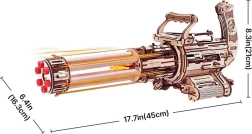 Prepárate para la acción con el modelo 3D de madera de la ametralladora rotativa ROKR, que combina construcción y diversión en uno. Ensambla un detallado modelo mecánico con seis cañones giratorios, capaz de disparar hasta 36 gomas mediante un eficiente mecanismo de engranajes. Disfruta de disparos rápidos pero seguros, montaje sencillo sin pegamento y una pieza única para coleccionar y decorar tu vitrina.