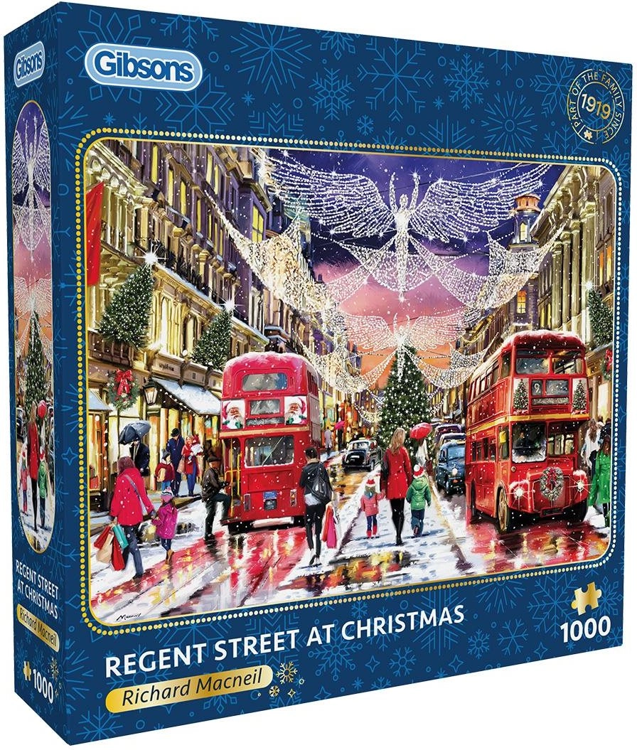 Descubre una detallada escena invernal de la icónica Regent Street con decoración navideña. El puzzle de GIBSONS es conocido por su alta calidad de fabricación, cortes precisos y colores intensos, lo que hace que montarlo sea un placer desde la primera hasta la última pieza.