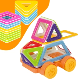 El set es una excelente puerta de entrada al mundo de los bloques magnéticos o una ampliación de una colección existente. Promueve STEAM (ciencia, tecnología, ingeniería, arte, matemáticas) y ayuda a los niños a ejercitar el pensamiento lógico, la creatividad y la resolución de problemas. El paquete incluye también pegatinas con números y signos matemáticos y un manual con ejemplos de construcción de vehículos.