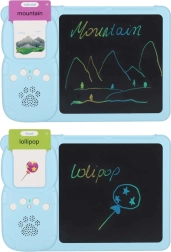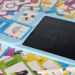 El lector interactivo con pizarra LCD desarrolla el vocabulario, la pronunciación y la motricidad fina. Solo hay que insertar una tarjeta y el dispositivo reproduce la pronunciación correcta en inglés; las categorías seleccionadas (animales, vehículos) se complementan con divertidos efectos de sonido. En la pantalla LCD de 8" los niños practican escritura, dibujo y anotaciones con el lápiz incluido.