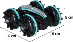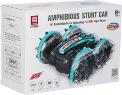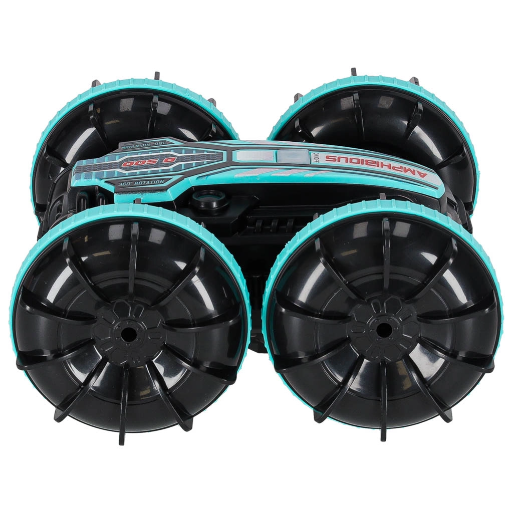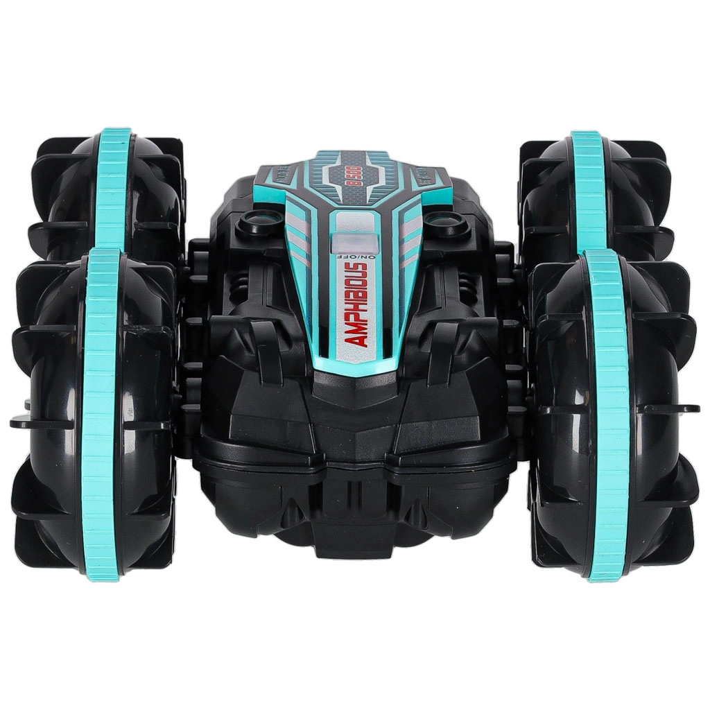 Circula por tierra y sobre la superficie del agua. Su construcción resiste salpicaduras y es ideal para divertirse en la piscina o la playa.