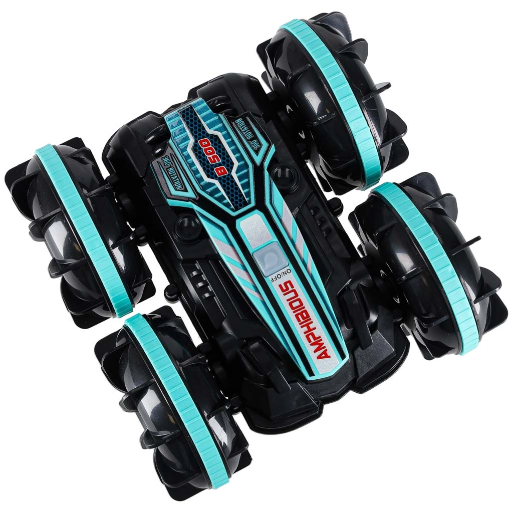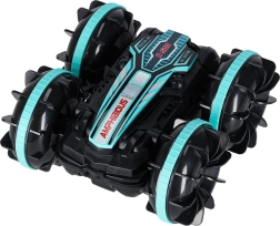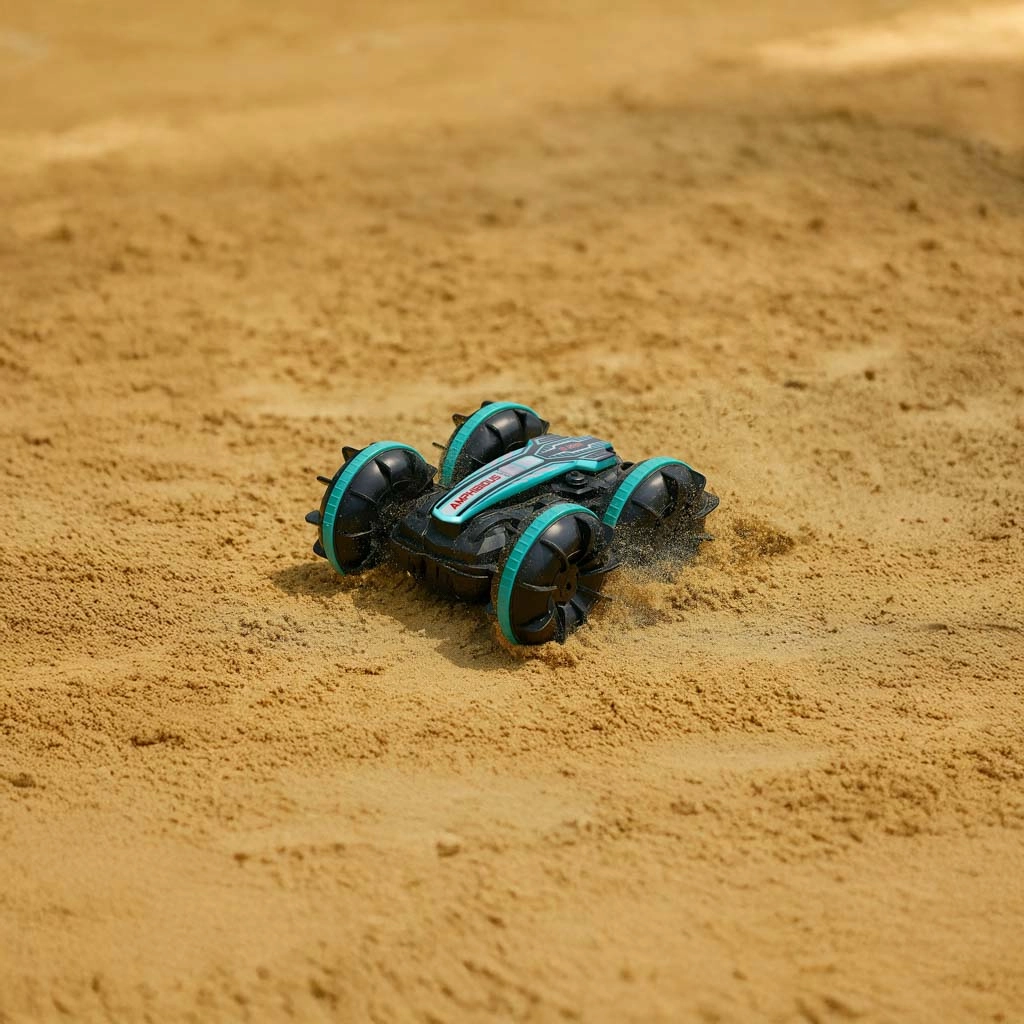 ¡Controla la conducción con un solo movimiento de la mano! El coche RC anfibio con mando gestual en la muñeca ofrece diversión intuitiva en casa y al aire libre. Sus ruedas robustas con dibujo profundo y la tracción 4x4 garantizan una conducción fluida en arena, césped y grava, y gracias a su construcción soporta salpicaduras y desplazamiento sobre la superficie del agua.