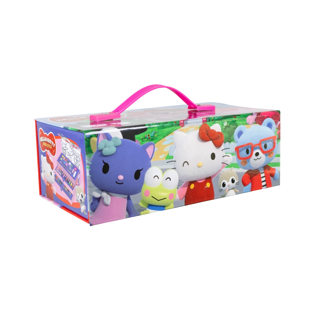 Descubre la adorable y práctica caja creativa HELLO KITTY, repleta de todo lo que necesitan los niños y los creadores principiantes. El diseño de tres niveles ofrece un completo set de materiales artísticos para dibujar, pintar y escribir, desde acuarelas hasta lápices de colores. Una excelente elección para crear en casa, para la escuela y para llevar de viaje.