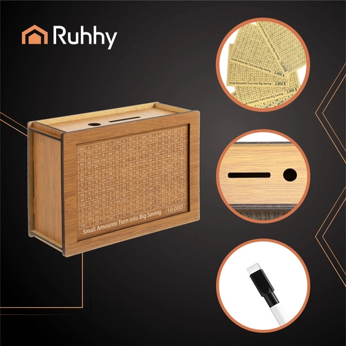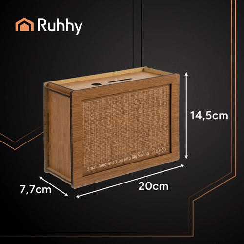 ¿Buscas una forma de crear un hábito financiero y ahorrar con una sonrisa? Esta hucha de madera RUHHY de alta calidad con tarjetas intercambiables y el estampado “10 000” convierte el ahorro en un reto divertido. Sigue tu progreso, marca las cantidades completadas y, gracias a su construcción cerrada, accederás a tus ahorros solo al lograr el objetivo. Una gran idea de regalo y una herramienta práctica de educación financiera para niños y adultos.