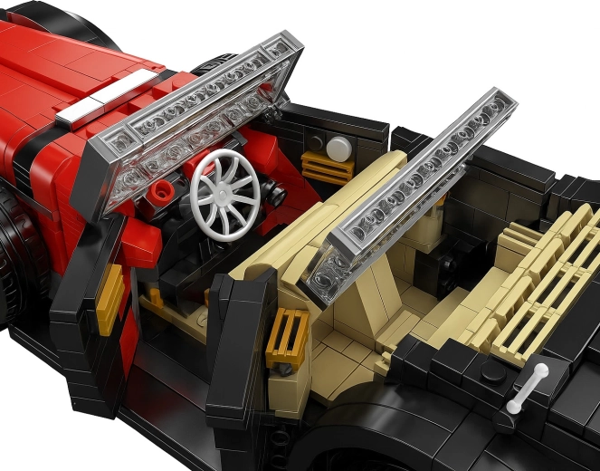Gracias al techo desmontable conviertes fácilmente el coupé en cabrio; las puertas abatibles y el capó del motor revelan más detalles realistas. Los neumáticos de goma, los marcados guardabarros y los faros subrayan el aspecto auténtico. El set es adecuado para adolescentes y adultos que valoran la combinación de diversión de construcción y el valor decorativo del modelo terminado.