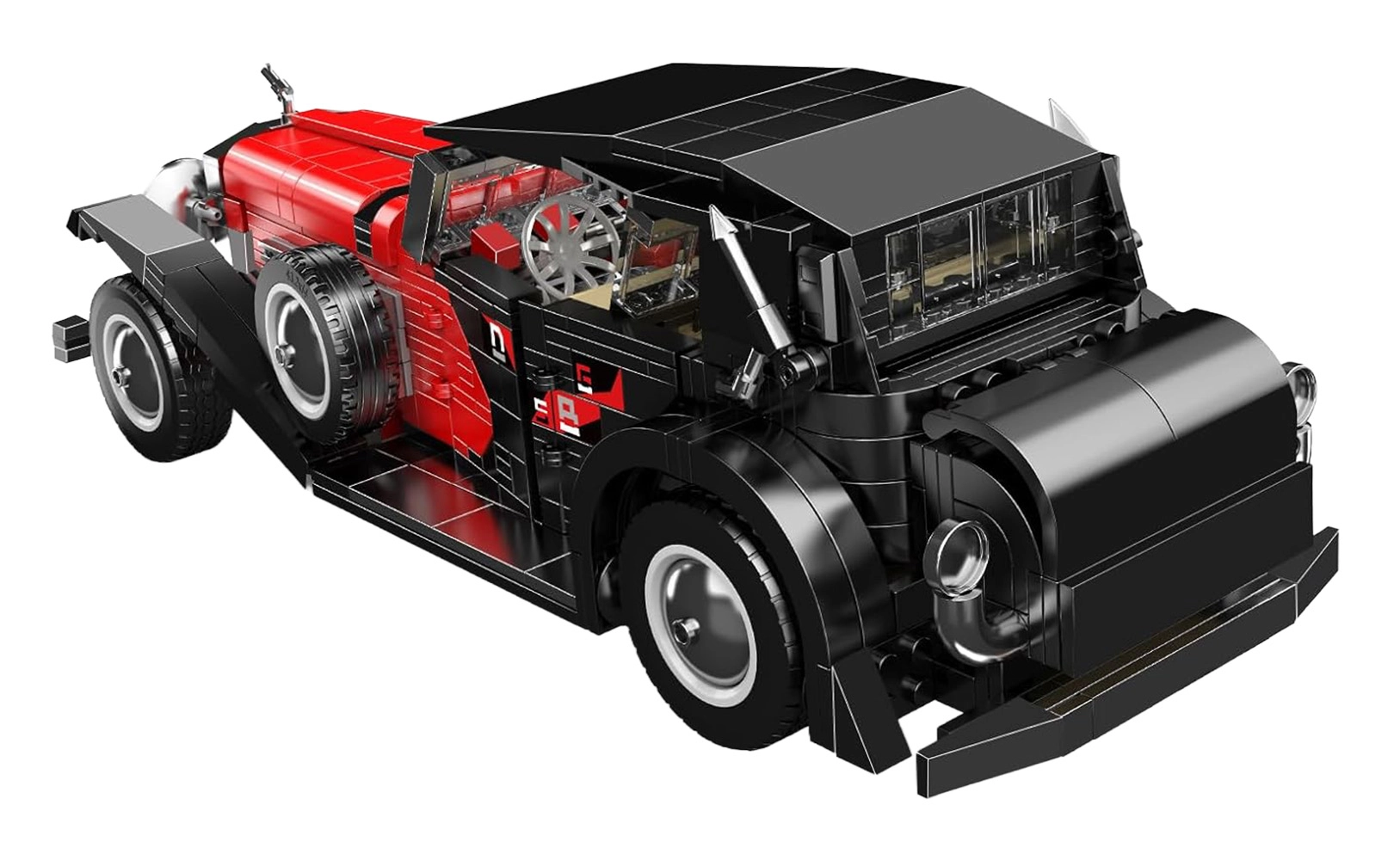 Este modelo detallado de un coche histórico en elegante combinación negro-rojo encantará a todo amante de los autos clásicos y de las maquetas de construcción. La estructura robusta, la silueta fiel y los elementos cuidadosamente diseñados del interior y exterior garantizan una construcción atractiva y una pieza de exhibición impactante.