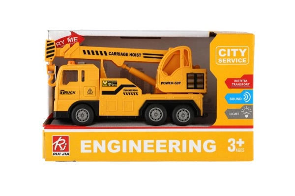 El vehículo se ilumina gracias a las pilas incluidas y la grúa con tracción por inercia permite un manejo sencillo. Este modelo es ideal para los pequeños aficionados a las máquinas de construcción que quieren sentirse como verdaderos ingenieros.