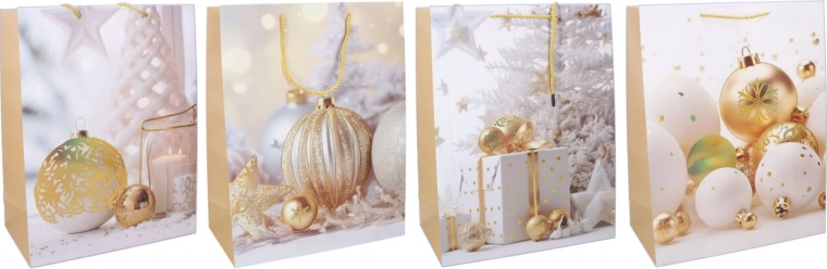 Una elegante bolsa de regalo navideña tamaño S alegrará a cualquier persona obsequiada. Gracias a sus dimensiones de 18 × 23 × 10 cm, es ideal para regalos pequeños, cosméticos o decoraciones. Ofrece acabado de calidad, asa resistente para un transporte cómodo y diseño festivo en 4 variantes.