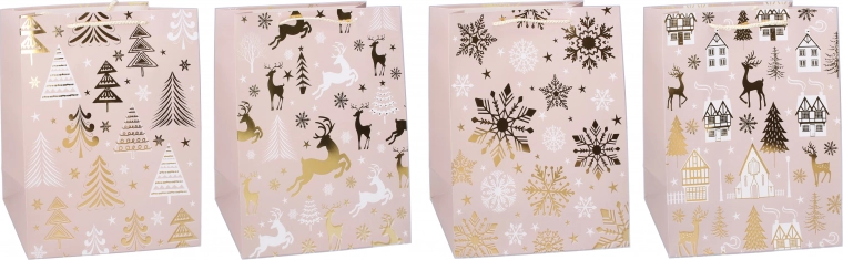 Elige entre 4 variantes y completa el envoltorio con un ambiente festivo. La bolsa es adecuada para familia, amigos y pequeños obsequios corporativos, y complementa a la perfección la decoración navideña.