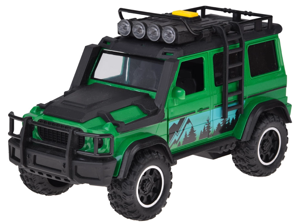 ¡Sal a la aventura! Este set detallado combina un SUV verde con neumáticos robustos y baca con un práctico remolque para transportar la moto. Los realistas efectos de luz y sonido añaden ambiente, mientras que las puertas delanteras abatibles y las ruedas giratorias de goma garantizan mucha diversión y un desplazamiento suave por el suelo.