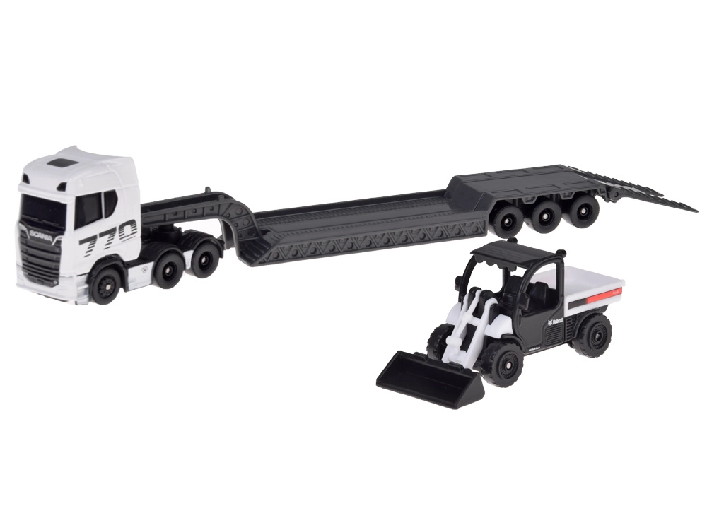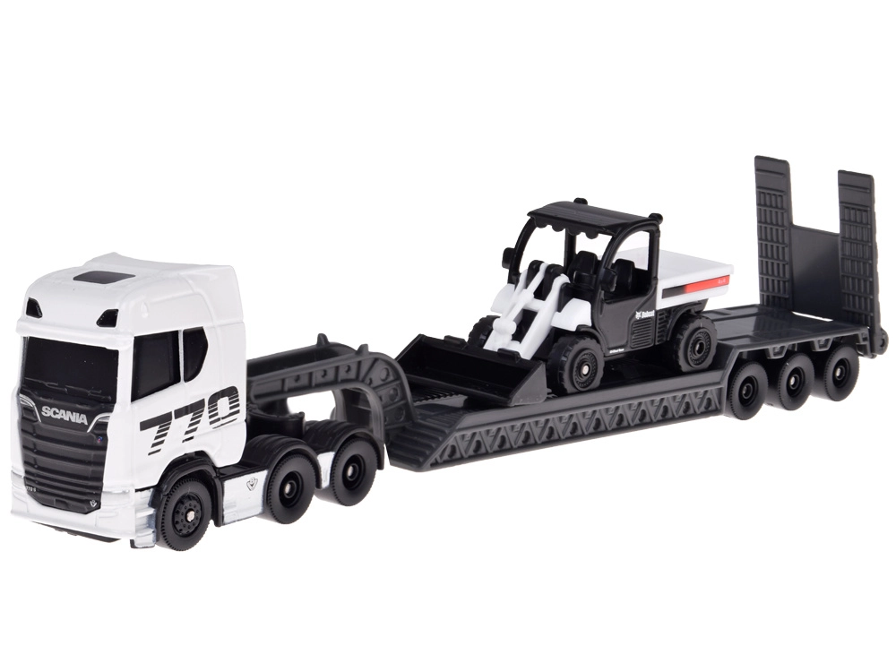 Set de modelo con licencia a escala 1:64 que presenta el SCANIA 770S con remolque de cama baja y un cargador compacto. Gracias a la carrocería metálica, los detalles precisos y la combinación desmontable, es ideal tanto para coleccionistas como para el juego creativo infantil.