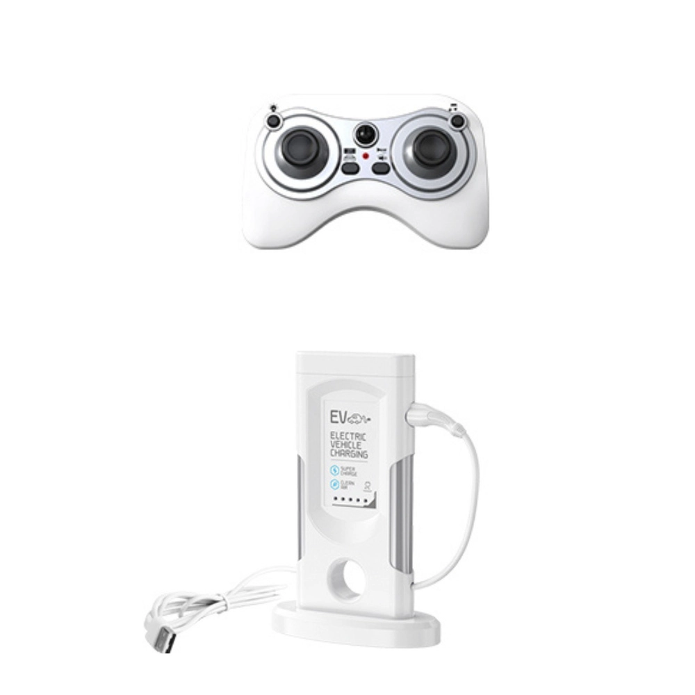 Incluye cable USB en forma de estación de carga y un práctico mando a distancia con dos joysticks para un control intuitivo.