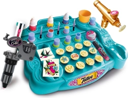Crea tus propios tatuajes temporales exactamente como te lo imaginas. Con el estudio de tatuajes Crazy Chic, los niños pueden dibujar diseños a mano alzada, usar plantillas adhesivas o estampar patrones con sellos. En el paquete encontrarás todo en un solo lugar: colores, purpurina, herramientas y accesorios para una aplicación sencilla.