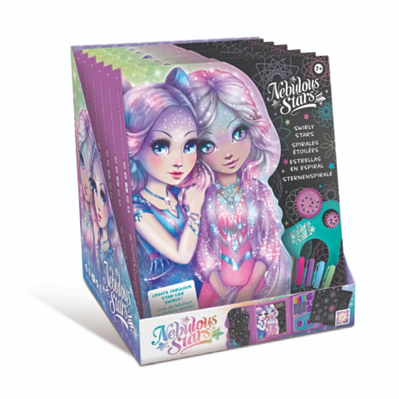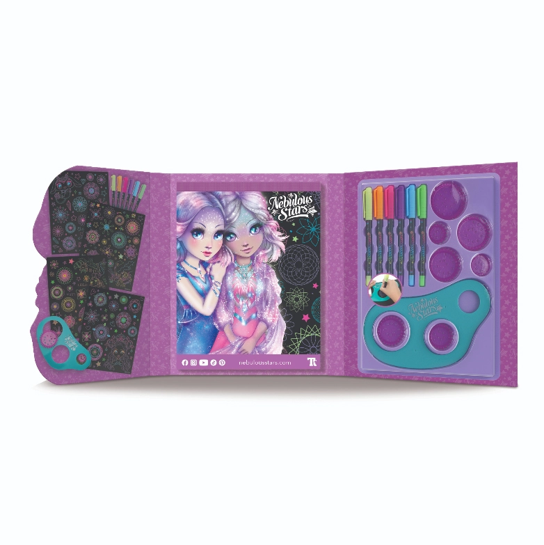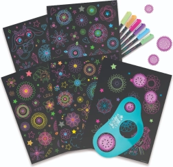 Descubre la magia del dibujo con el set Nebulous Stars para crear espirales estelares. El conjunto ofrece 48 páginas negras, una plantilla de espirales con 7 ruedas, 6 bolígrafos de gel neón y pegatinas para una diversión creativa sin fin. En 36 páginas ilustradas podrás colorear y completar espirales brillantes: ideal para desarrollar la creatividad y la motricidad fina.