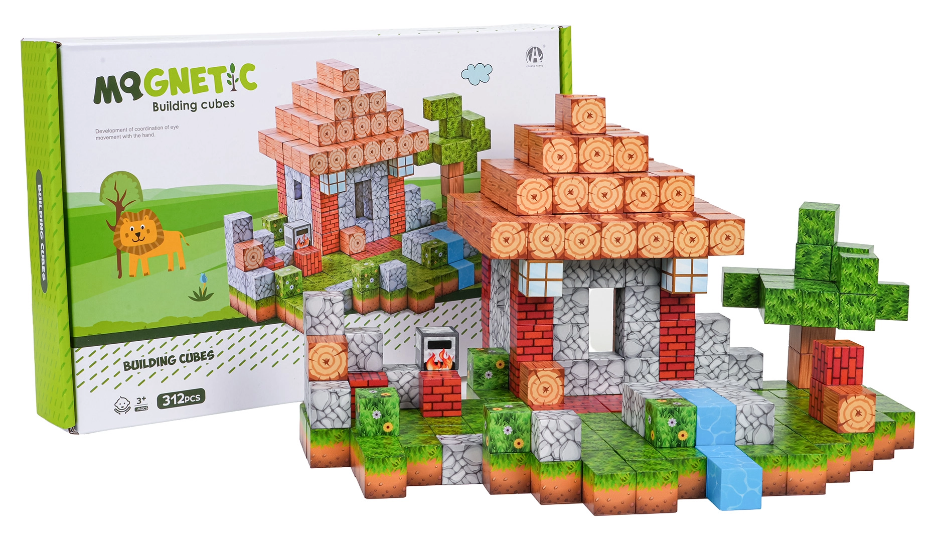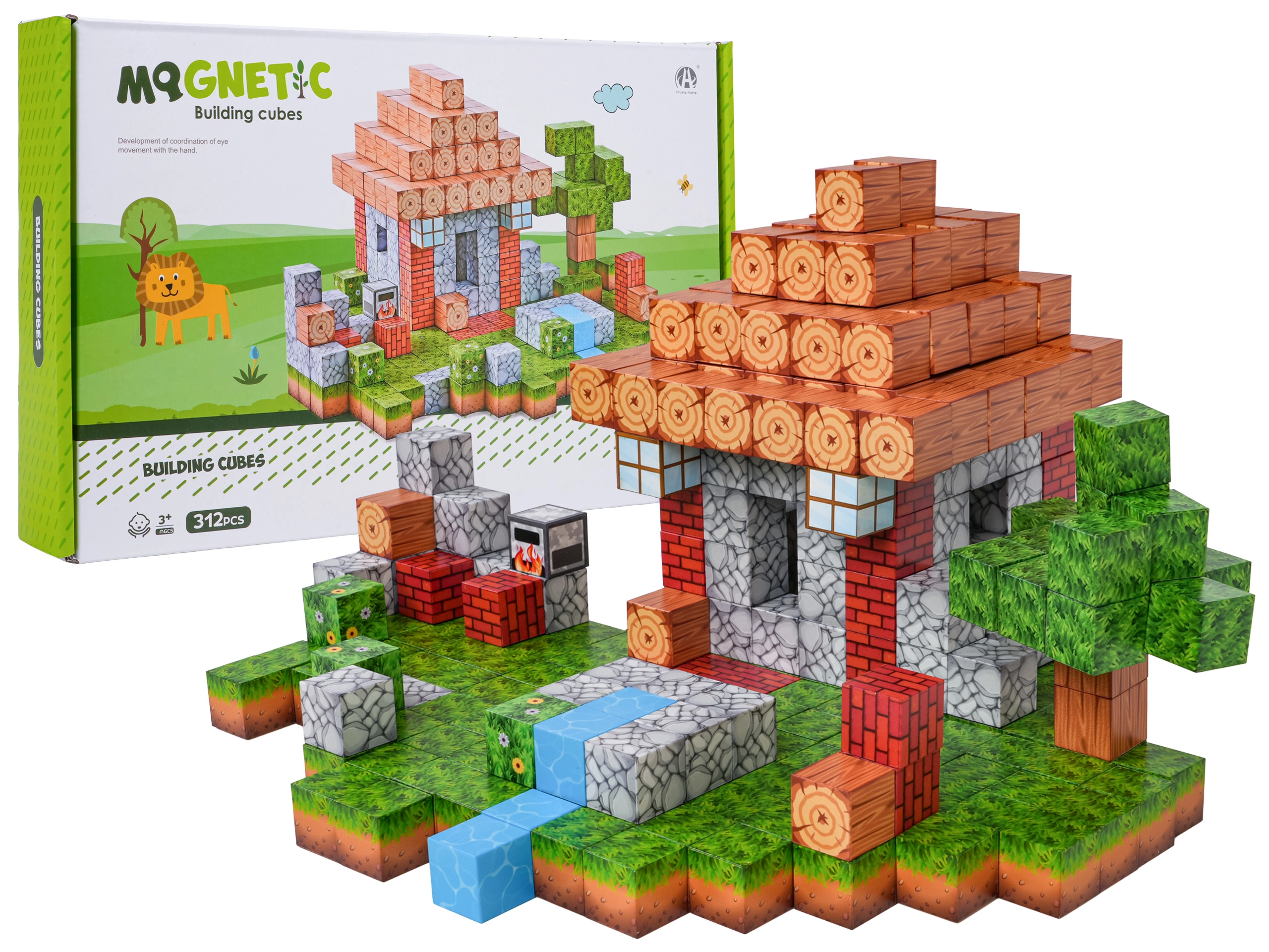 Descubre el mundo creativo de la construcción con bloques magnéticos 3D para niños a partir de 3 años. El set de 312 bloques de colores con estampados de madera, ladrillo, césped y agua permite construir una casa con jardín e incluso escenas pixeladas completas. Los imanes de neodimio de gran fuerza garantizan estructuras estables, mientras el juego desarrolla el pensamiento lógico y la motricidad fina.