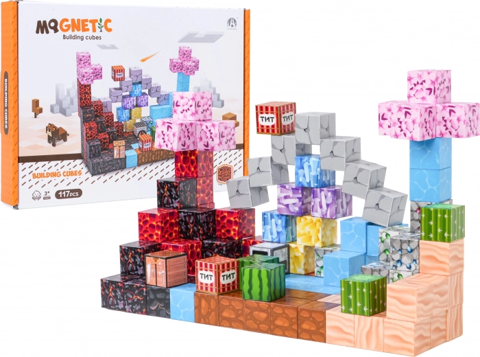 Descubre el mundo creativo de los juegos de construcción magnéticos. Este completo set incluye 117 bloques 3D de colores que, gracias a los imanes de neodimio, se conectan de forma fiable y forman estructuras estables. Los materiales de calidad y seguros, junto con los colores llamativos, invitan al juego y estimulan la imaginación.