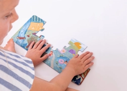 Las piezas extragrandes del rompecabezas, de cartón FSC de 2 mm, se agarran bien, se ensamblan con facilidad y resisten el juego diario, sin plásticos.