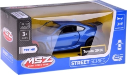 Vive la atmósfera de las carreras con el modelo TOYOTA GR86 a escala 1:28. Carrocería metálica, puertas abatibles, efectos de luz y sonido y mecanismo de retrofricción pull-back que garantizan gran diversión y un aspecto realista para pequeños conductores y coleccionistas.