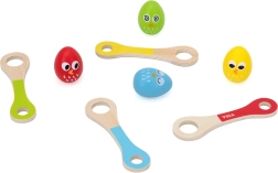 Un juego de movimiento auténtico que entretiene a pequeños y mayores. El set incluye cuatro cucharas de madera con orificios de distintos tamaños y cuatro huevos de colores con divertidas caras. Gracias a los dos niveles de dificultad, el juego se ajusta a las capacidades de los niños y desarrolla paso a paso su concentración y seguridad en el movimiento.