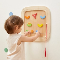Este tablero de madera para pared es ideal para habitaciones infantiles, salas de juegos y guarderías: el montaje en la pared ahorra espacio y garantiza un juego seguro y estable. Con el lápiz magnético, los niños controlan la dirección de las bolitas, superan obstáculos y apuntan a zonas con puntuación, fortaleciendo de forma natural la paciencia, la concentración y la coordinación.