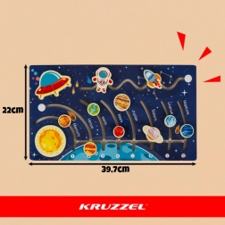 Descubre el universo de forma lúdica con el rompecabezas Montessori de madera «Sistema Solar» de la marca KRUZZEL. El laberinto interactivo de planetas con cohete fomenta la motricidad fina, el pensamiento lógico y el conocimiento de los planetas. La madera de pino de calidad, los bordes suaves y la fabricación resistente garantizan un juego seguro y divertido para los niños.