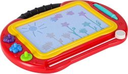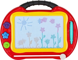 La pantalla magnética muestra cuatro colores y se limpia por completo con un solo deslizamiento. Ideal para dibujar, escribir y aprender sin fin.