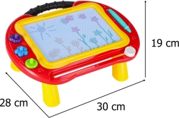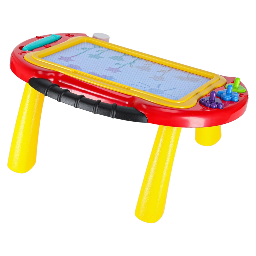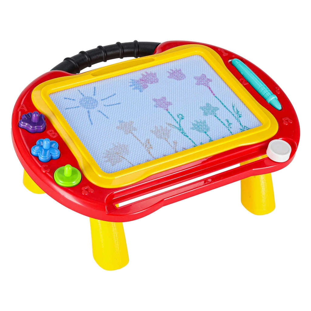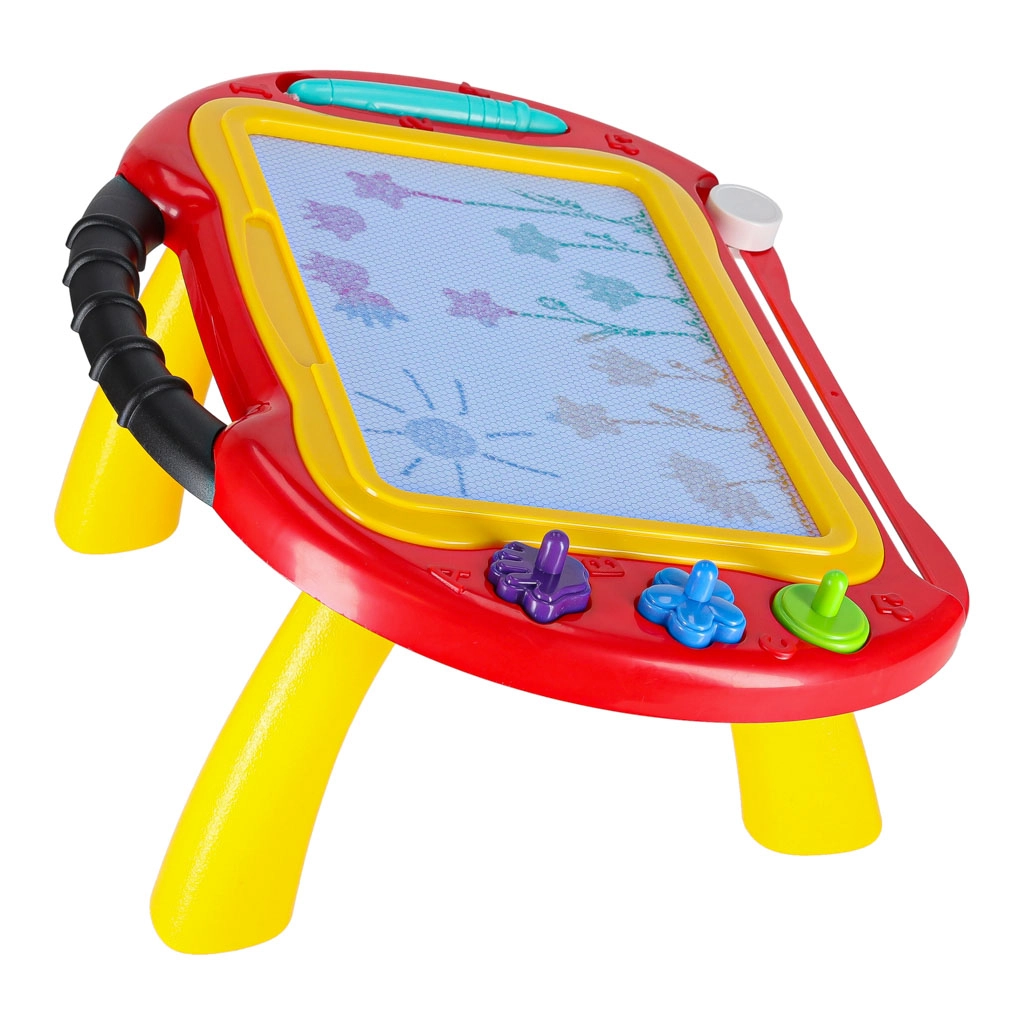 La colorida pizarra magnética 2 en 1 combina una mesa para dibujar y una pizarra portátil con taquígrafo. Gracias al lápiz magnético, 3 sellos y la pantalla multicolor (4 colores), los niños crean sin ensuciar y borran rápidamente con el deslizador de un solo movimiento. Las patas desmontables y el práctico asa facilitan su transporte en casa y de viaje.