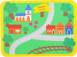 El tapete con carreteras y edificios inspira el juego imaginativo y desarrolla la percepción espacial. Los niños pueden ordenar formas, clasificar colores y crear sus propios escenarios de tráfico, adquiriendo de forma natural el pensamiento lógico y las bases de la educación vial.