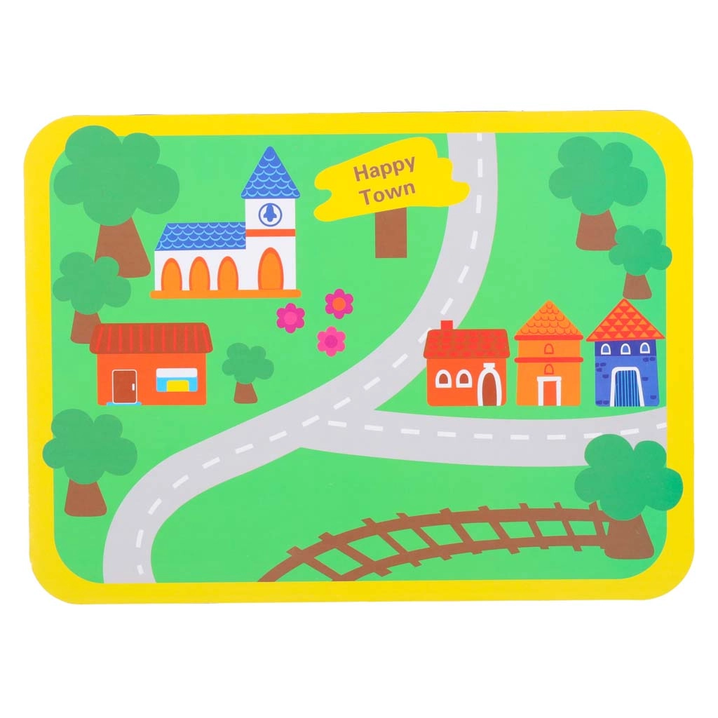 El tapete a color con carreteras y edificios estimula la imaginación y el aprendizaje de situaciones de tráfico, ideal para jugar solo o en grupo.