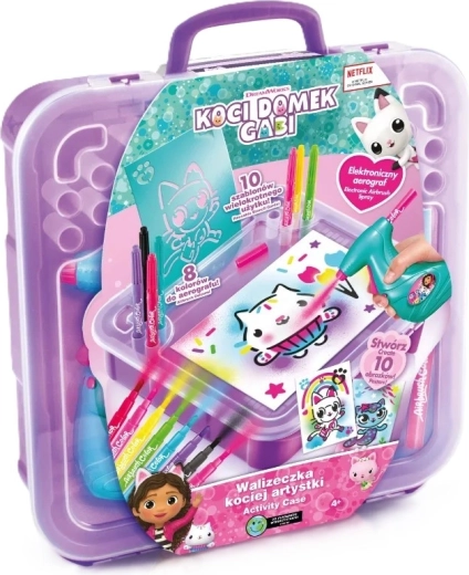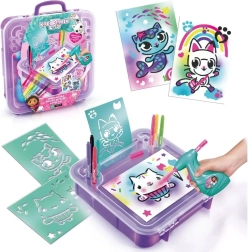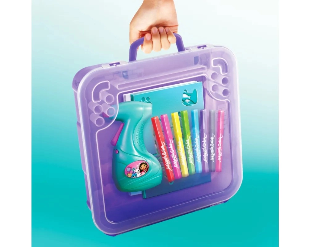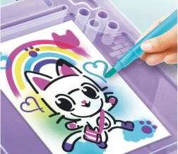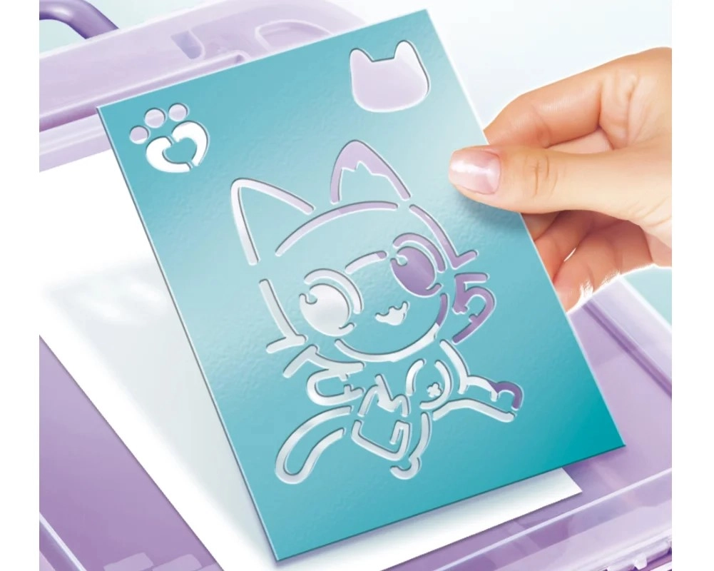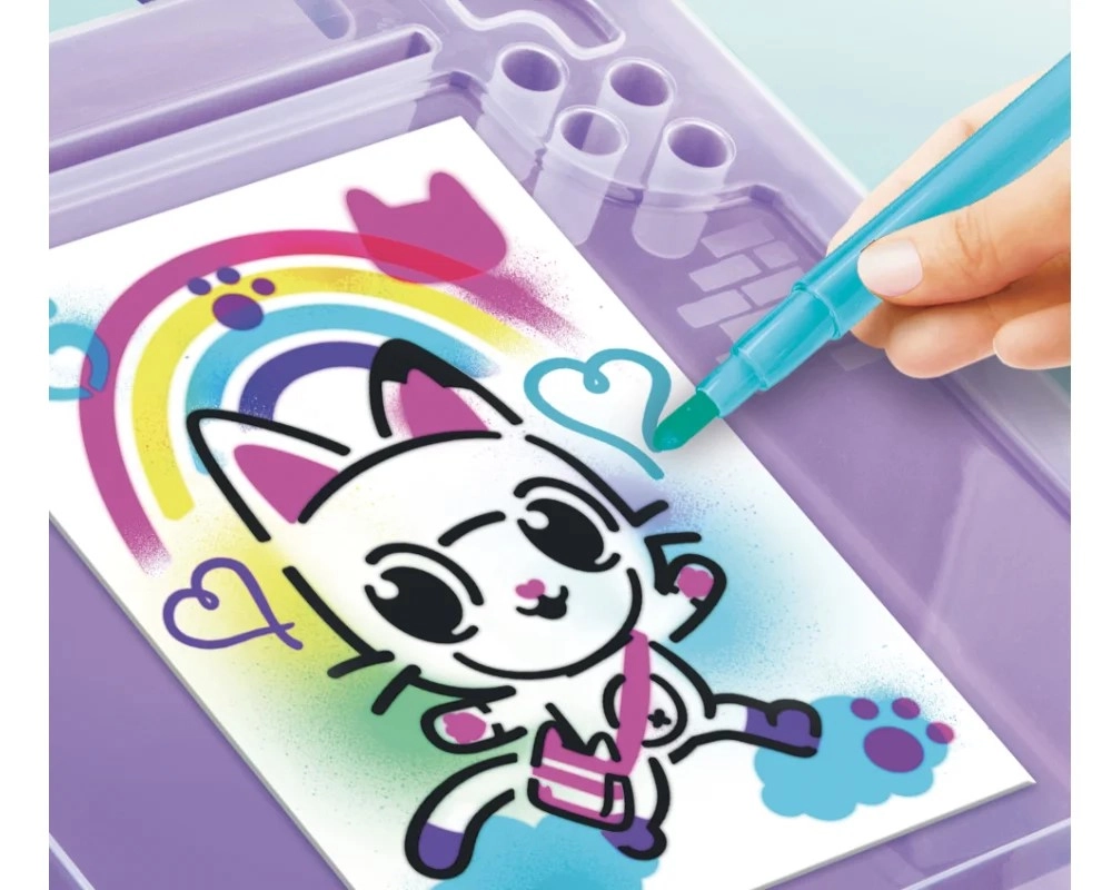 Este set creativo portátil es un regalo perfecto para pequeños artistas que aman los colores y la fantasía. Solo hay que insertar el rotulador en el dispositivo, pulsar el botón y empezar a rociar: su manejo sencillo lo hace apto incluso para los más pequeños. El diseño inspirado en el cuento La casa de Gabby encantará a todos los fans de los adorables personajes gatunos.