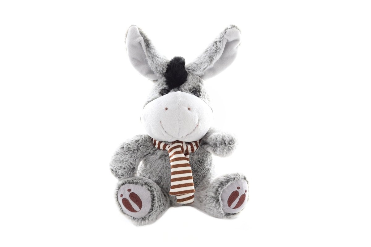 El burrito está hecho de un material agradable y cuenta con un relleno suave que invita a apretarlo y abrazarlo. Su diseño seguro, sin piezas pequeñas desmontables, es adecuado para niños desde el nacimiento.