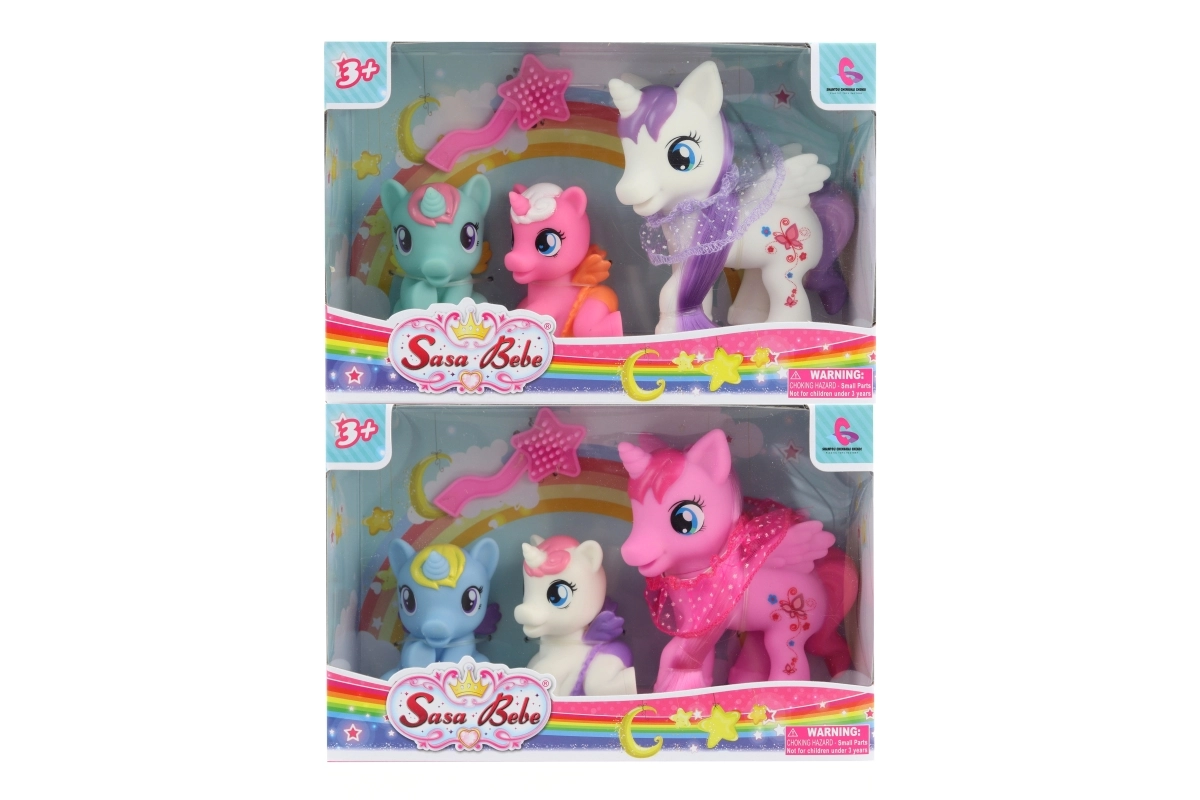 Un adorable set de tres unicornios alegrará a cualquier pequeño amante de los animales mágicos. El paquete incluye un práctico peine para cepillarlos. Juguete ideal para desarrollar la imaginación y la motricidad fina de los niños a partir de 3 años. Las compactas dimensiones del paquete 20,5 × 13,5 × 6 cm son perfectas también para viajar.