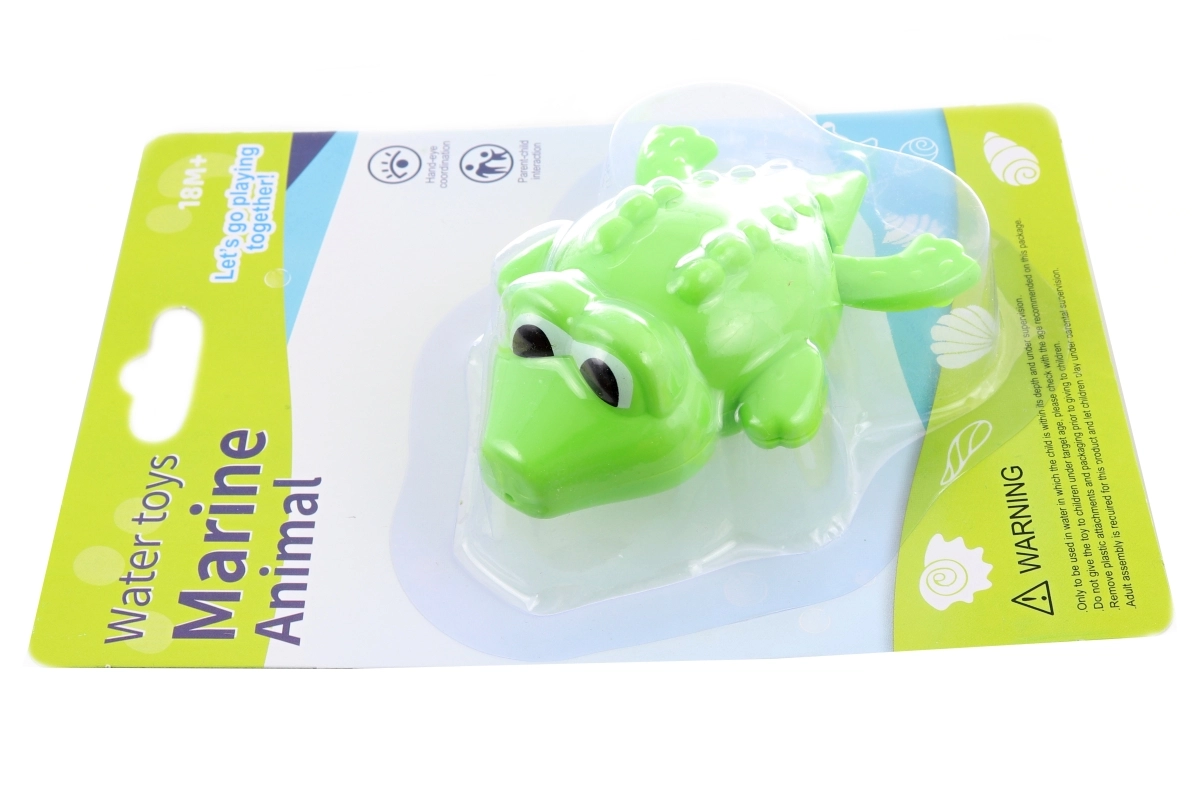 El alegre cocodrilo de cuerda para el agua convierte cada baño en una aventura divertida. Solo hay que girar varias veces el mecanismo de cuerda y el cocodrilo empieza a moverse de forma autónoma en el agua, lo que entusiasma a los niños y refuerza su relación con los juegos acuáticos.