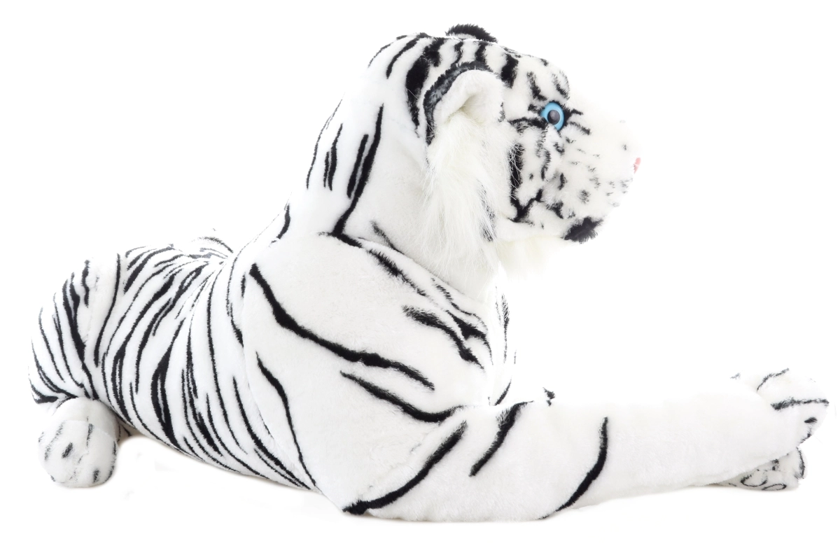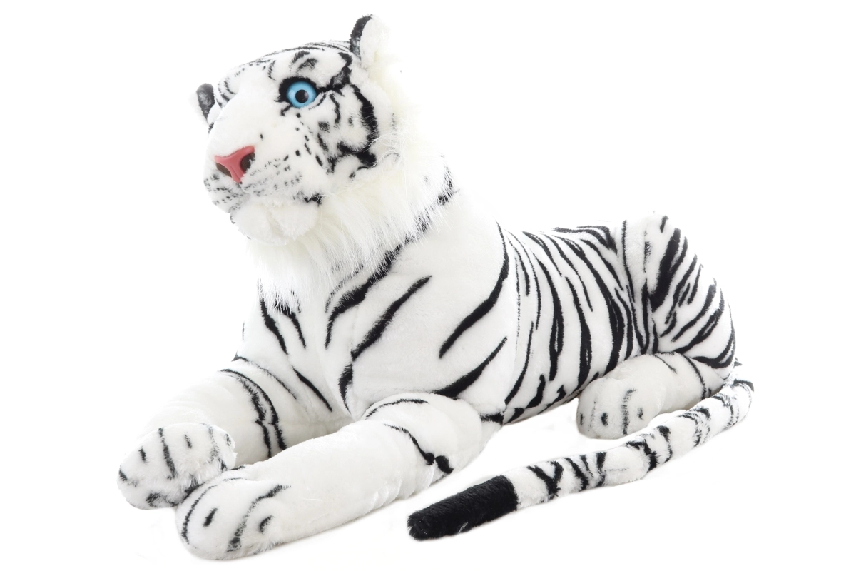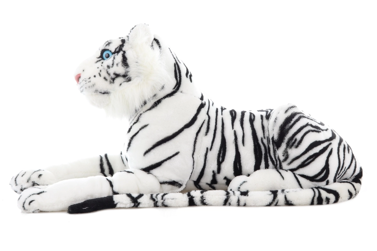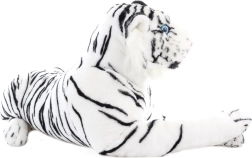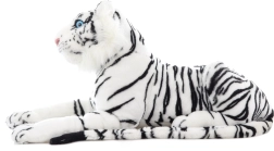 Este suave tigre blanco en posición tumbada destaca por su aspecto realista y su delicado peluche que invita a abrazarlo. Gracias a su fabricación de calidad y a los cuidados detalles —desde las rayas hasta los llamativos ojos— es un gran compañero para la habitación infantil y un elegante complemento decorativo para el hogar.