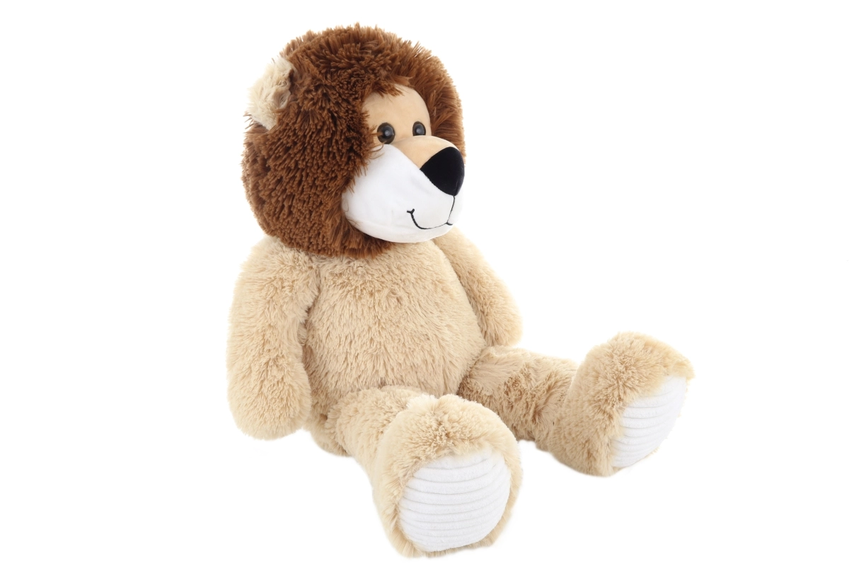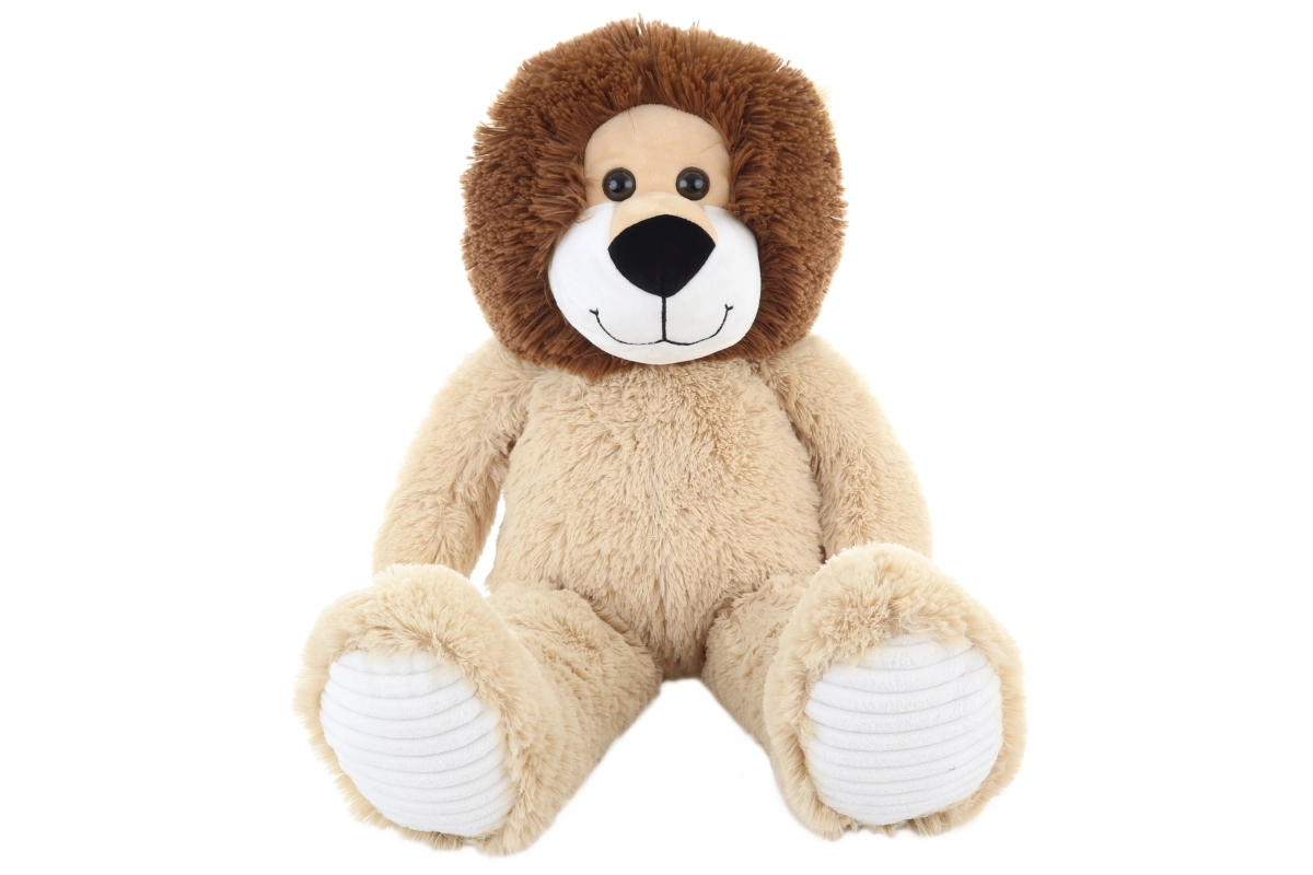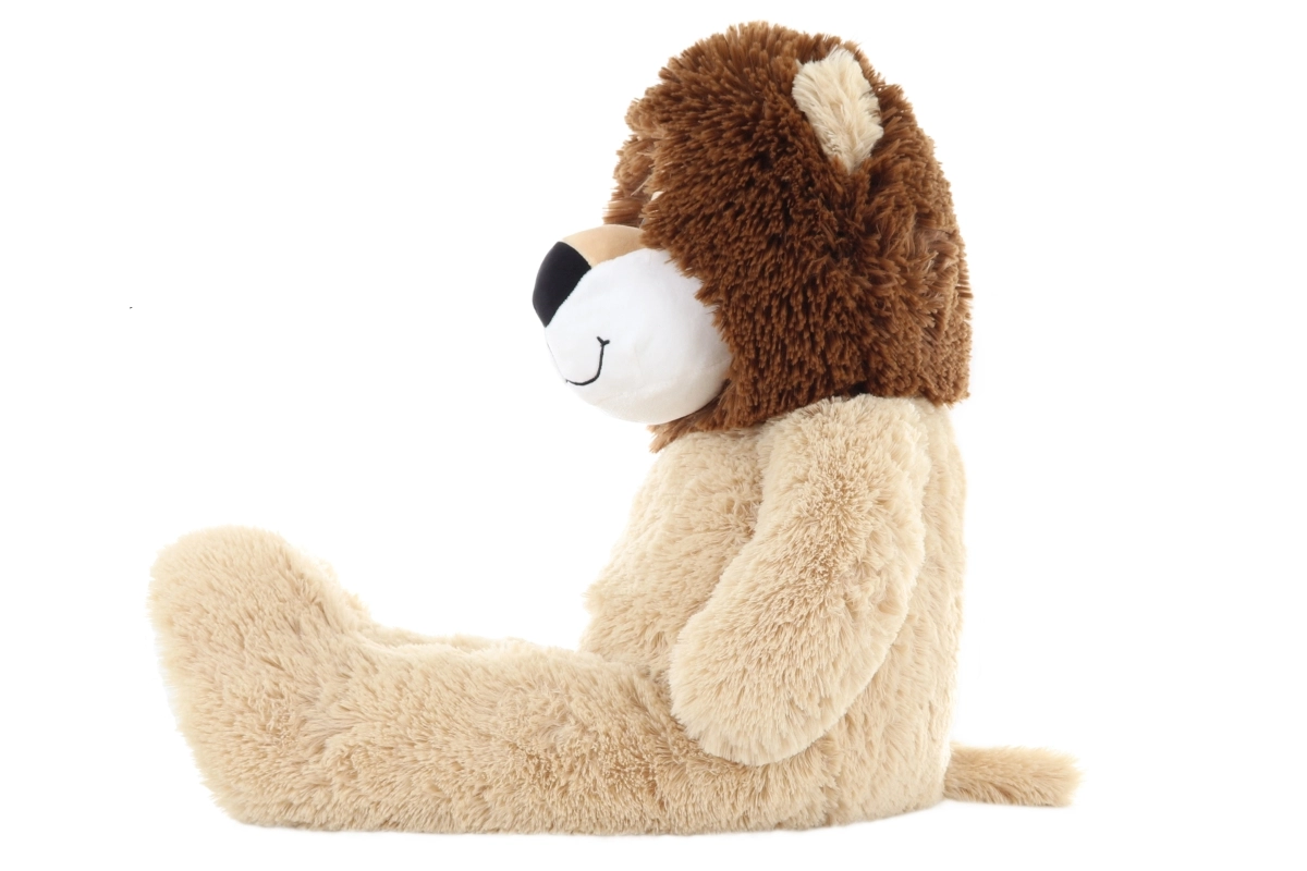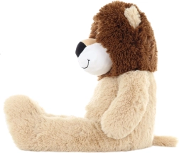 Gracias a sus grandes patitas, el león se sienta bien en una estantería o en la cama y funciona como un encantador adorno y un gran compañero de juegos.