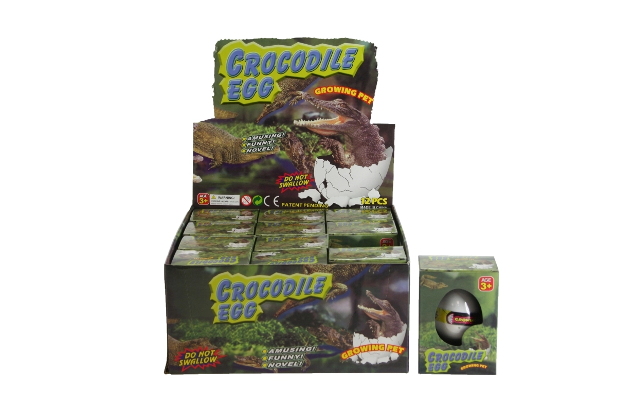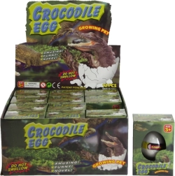 Divertido huevo que, al colocarlo en agua, empieza a agrietarse y en 48 horas crece de él un pequeño cocodrilo. Ideal como artículo de broma para niños y adultos, fomenta la curiosidad, la paciencia y aporta sorpresa en cada eclosión.