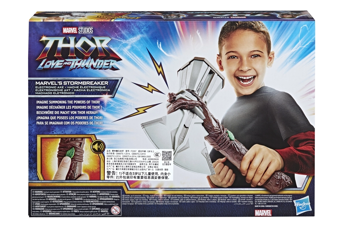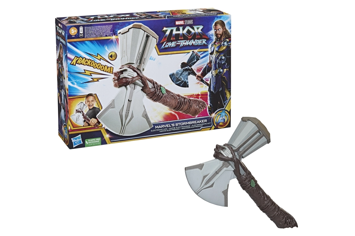 Experimenta el poder del héroe de AVENGERS con la réplica del legendario hacha Stormbreaker. El juguete está inspirado en la película Thor: Love and Thunder y ofrece a niños y fans una experiencia auténtica gracias a sus dinámicos efectos de sonido.
