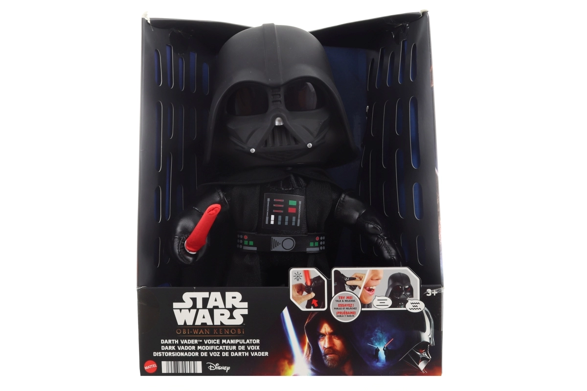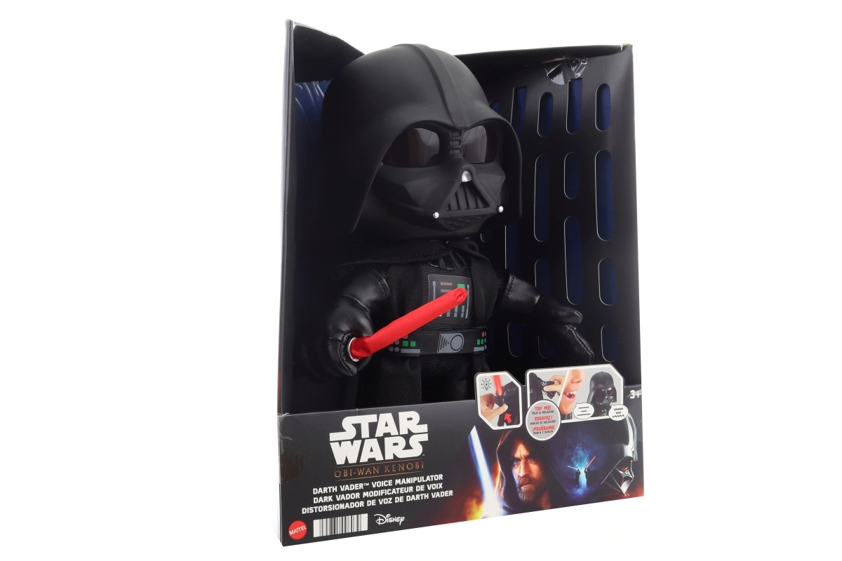 El villano favorito de una galaxia muy, muy lejana llega en forma de un peluche de calidad que encantará tanto para jugar como para coleccionar. La figura de Darth Vader está equipada con un sable iluminado y un cambiador de voz, lo que desata la imaginación infantil al máximo. El manejo es simple: activa las funciones presionando la mano.