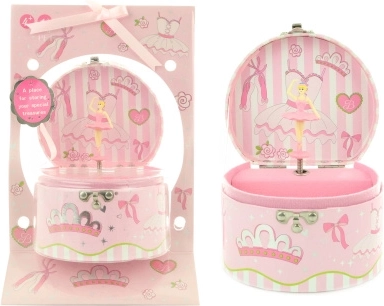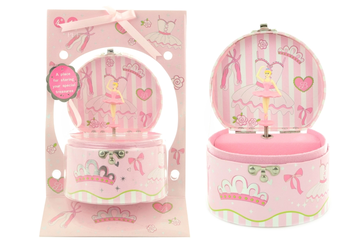 Una mágica caja de música joyero con bailarina que encantará a cualquier pequeña coqueta. Al dar cuerda, la bailarina gira y suena una melodía suave. En el interior encontrarás un práctico espejo y espacio para pequeños tesoros. Un regalo precioso para niños a partir de 4 años, melodía delicada, bailarina danzante, tamaño compacto.