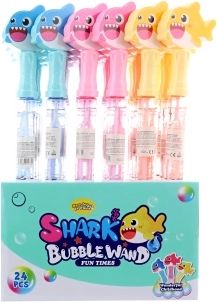 Divertido pompero con motivo de tiburón para niños a partir de 3 años. Gracias a su fabricación en plástico es ligero y seguro, tiene dimensiones compactas y ofrece muchas variantes de color. Ideal para jugar al aire libre, en el jardín o en fiestas infantiles, donde crea montones de burbujas brillantes.