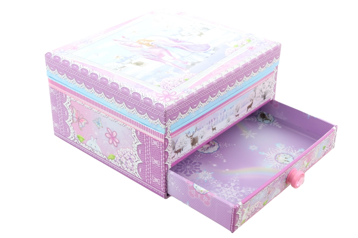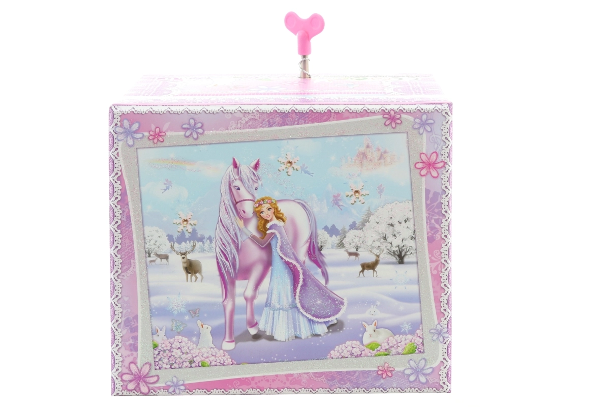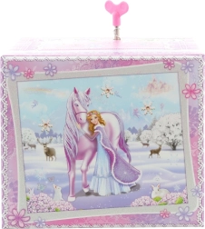 Esta elegante caja de música para joyas con motivo de princesa invernal y unicornio combina un aspecto decorativo con una organización práctica. Tras dar cuerda al mecanismo y abrir la tapa, la figurita comienza a girar y suena una melodía que crea una atmósfera mágica.