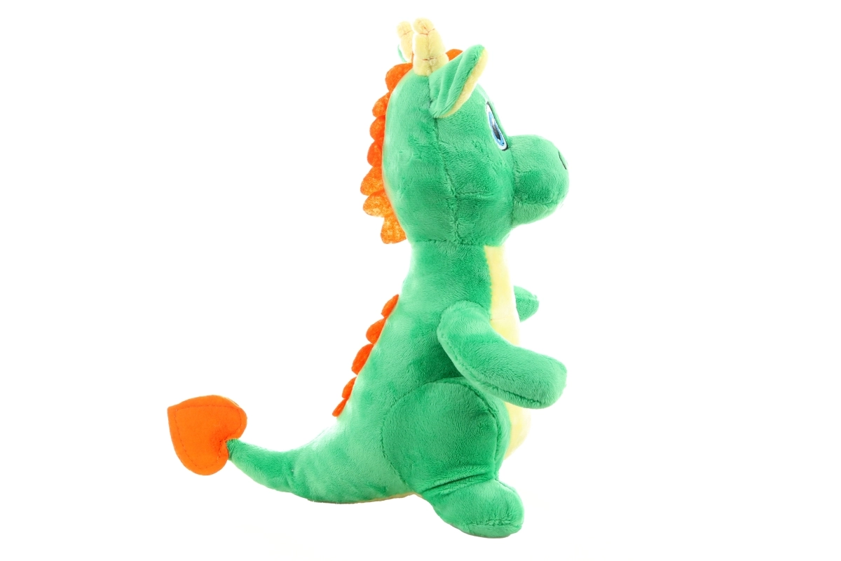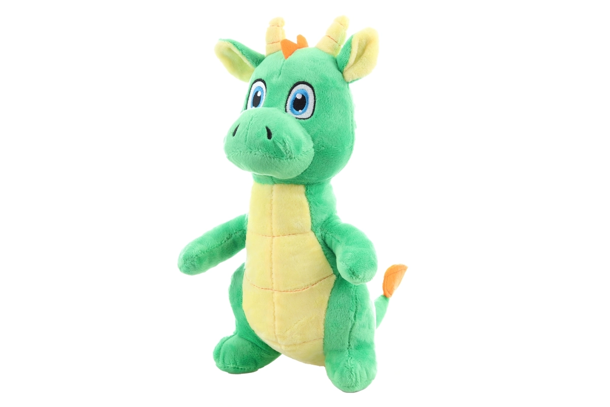 Este dragón de peluche verde, con barriguita en contraste y adorables detalles, se convertirá rápidamente en el compañero favorito de cualquier niño. Gracias a su superficie muy suave y al relleno esponjoso, es ideal para abrazos reconfortantes y juegos delicados durante el día.