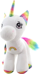 Este unicornio de peluche blanco con detalles arcoíris está hecho para los abrazos más tiernos. Su superficie suave, los ojos bordados y la fabricación segura sin piezas pequeñas extraíbles lo convierten en el compañero perfecto para bebés y niños más grandes. Destaca por su aspecto adorable y su ligereza para el juego diario y un adormecimiento reconfortante.
