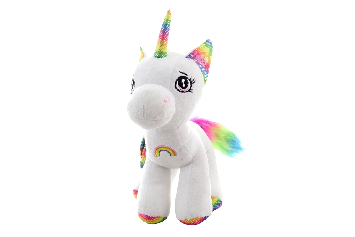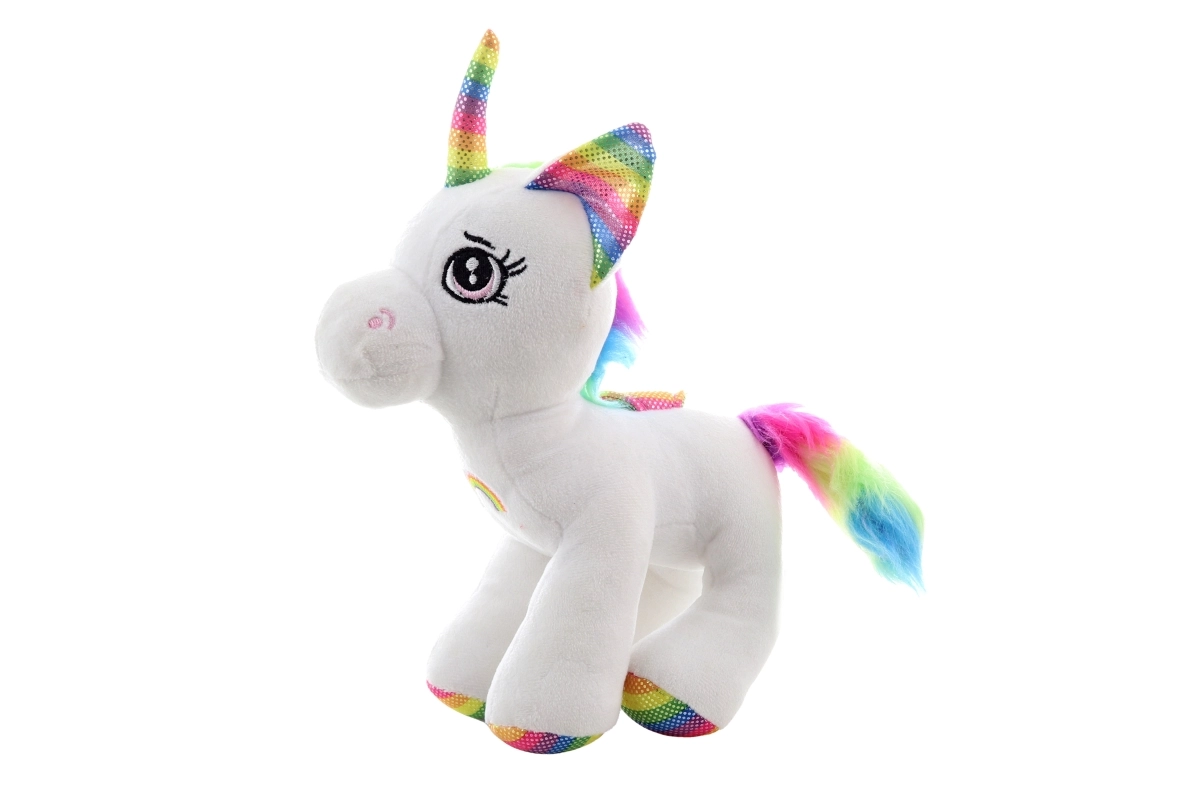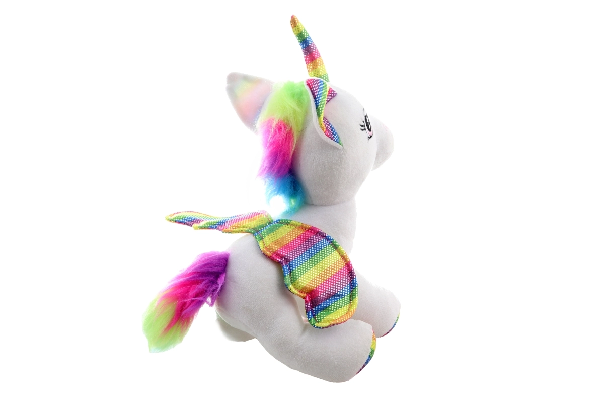 El cuerno, las orejas, las pezuñas, la crin y la cola en colores arcoíris le dan al unicornio un aspecto de cuento de hadas que a los niños les encanta.