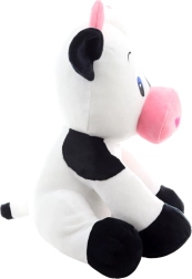 El diseño con manchas en blanco y negro, hocico rosado y cuernos le da un aspecto entrañable. Su forma estable para sentarse también la convierte en una encantadora decoración para la habitación infantil.