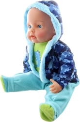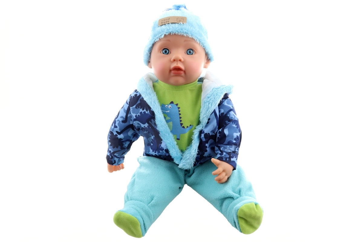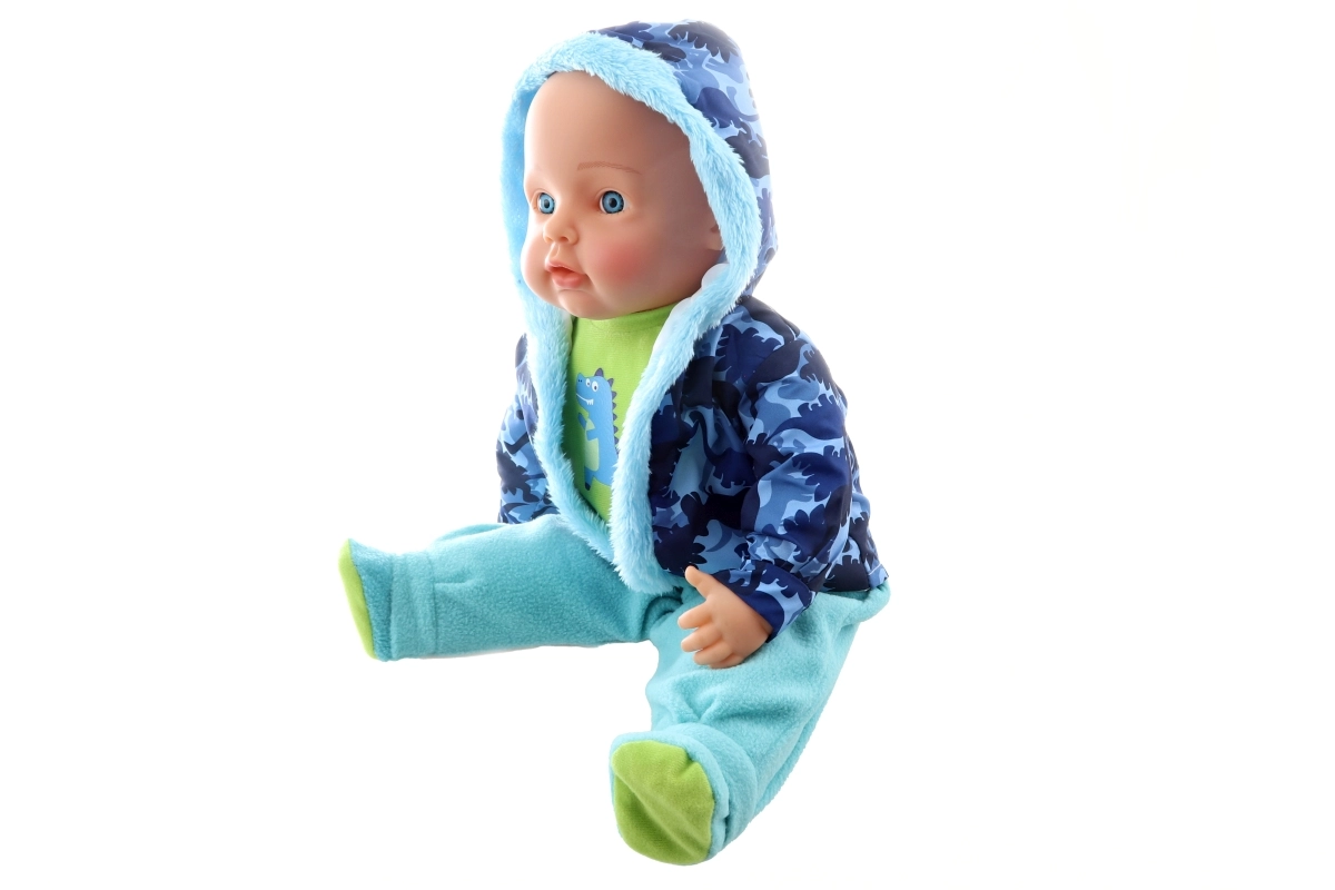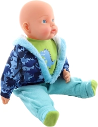Este gran muñeco bebé niño es un excelente compañero para el juego diario. Gracias a su cuerpo blandito se sostiene y se abraza cómodamente, mientras que la cabeza y los extremos de las extremidades de plástico aportan un aspecto auténtico. El conjunto de ropa con motivo de dinosaurio se puede quitar y volver a poner con facilidad, ideal para entrenar la motricidad fina y los juegos de fantasía.