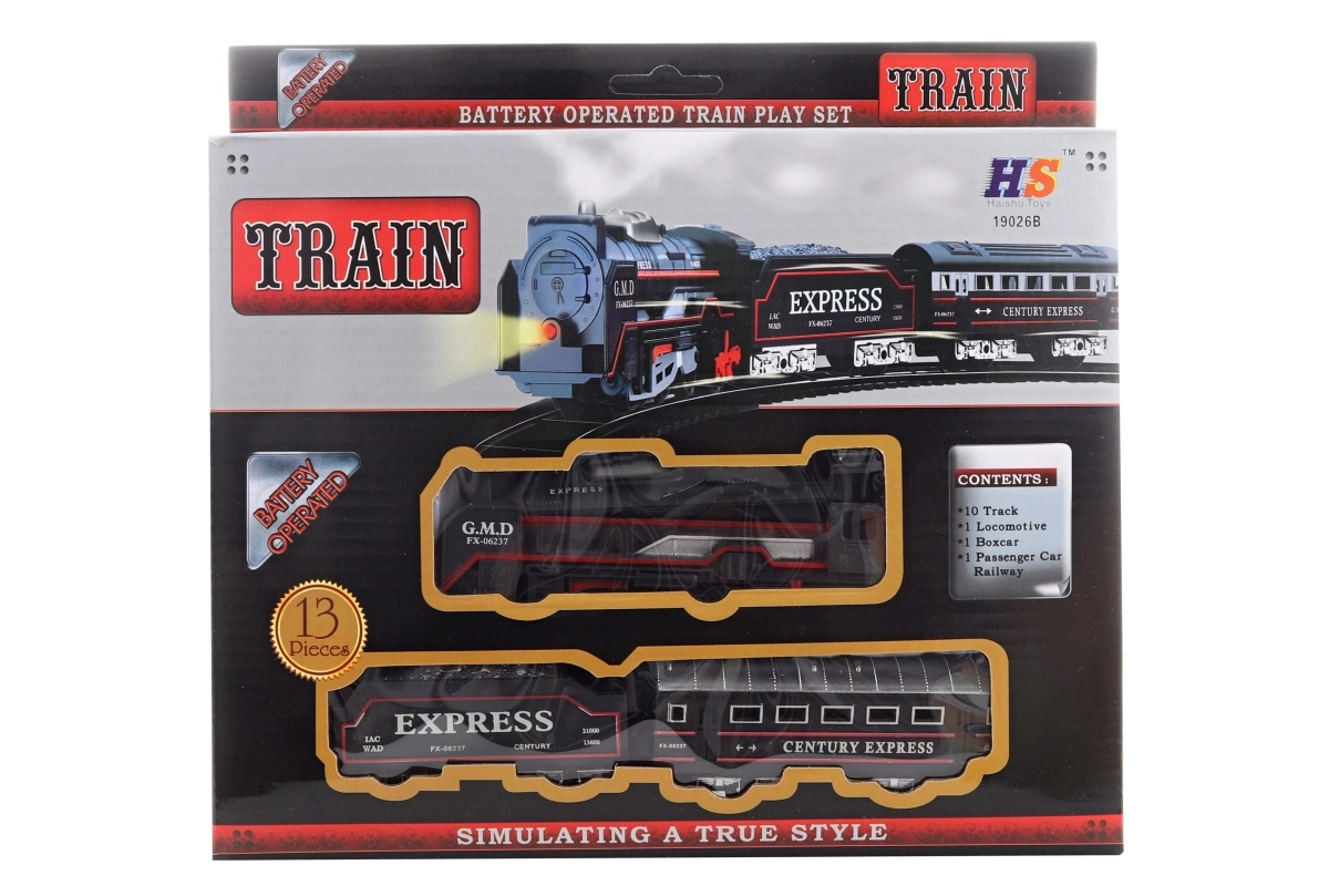 Descubre el divertido juego de tren a pilas, que encantará a los pequeños amantes de los trenes desde los 3 años. El set incluye 10 tramos de vía, una locomotora y 2 vagones de plástico resistente, y al montarse forma un circuito de aproximadamente 67,5 cm de diámetro. La locomotora funciona con 2× pilas AA (no incluidas).