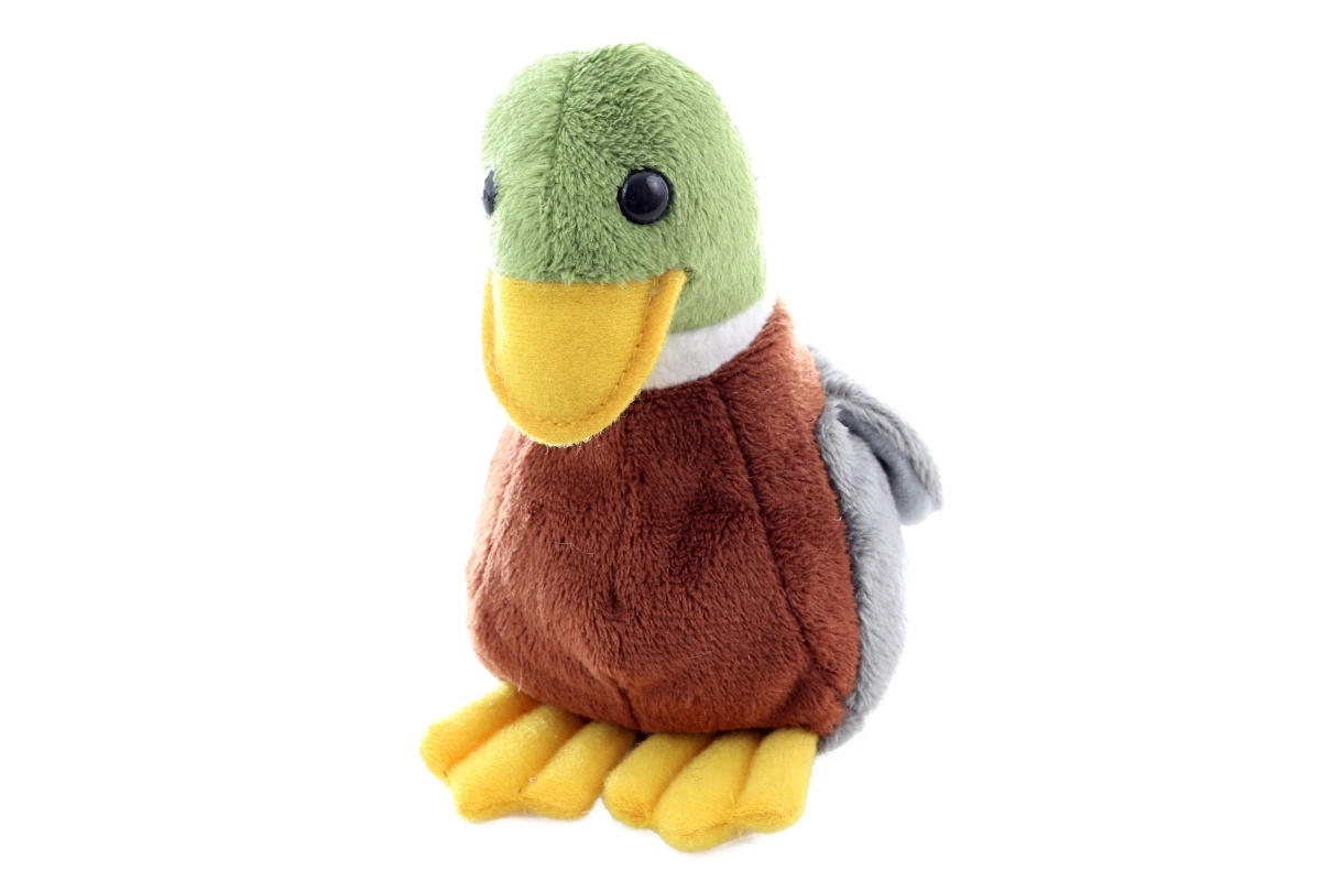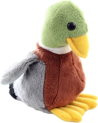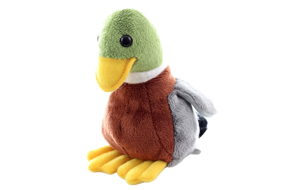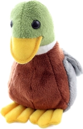 Este pato de peluche, elaborado con detalle, tiene una superficie suave y aterciopelada y un diseño de colores realista (cabeza verde, pico y patas amarillas, cuerpo marrón, alas grises) que encantará a cualquier pequeño amante de los animales. Gracias a las bolitas en el relleno, mantiene la estabilidad y se coloca mejor en una estantería o en la cuna.