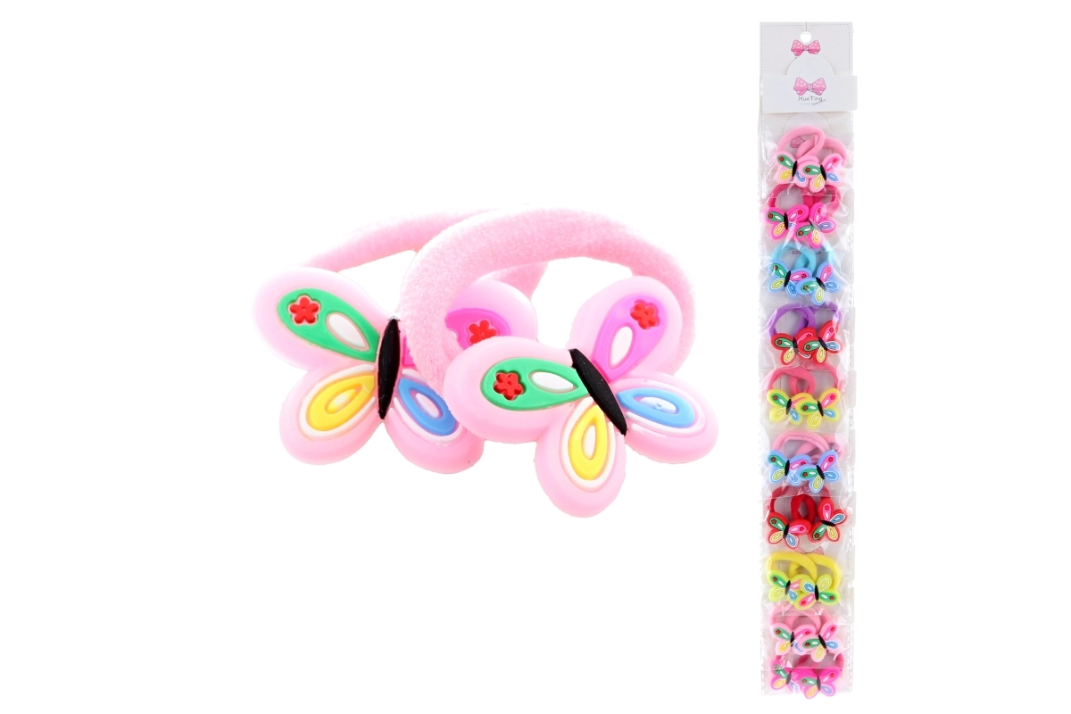 Las adorables gomas para el pelo con motivo de mariposas encantarán a niños y adultos. En cada bolsita hay 2 unidades, se venden únicamente en paquetes de 10 bolsitas. Ideales para el uso diario, sujetan suavemente el cabello sin tirar y aportan un toque divertido al peinado.